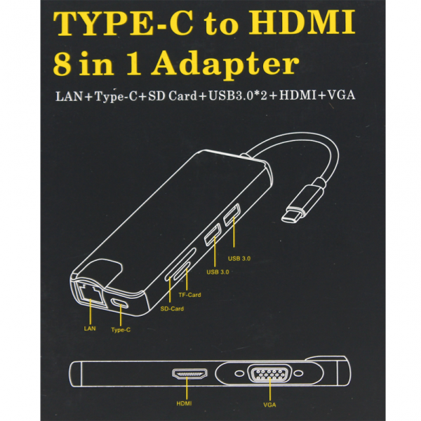 Adapter Type C na RJ45 (LAN) HDMI VGA 2xUSB 3.0 PD SD microSD 7u1 JWD-TC32