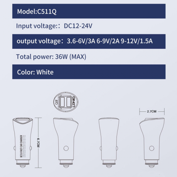 2.2 USB Port QC3.0 izlaz: 5V/3A or 9V/2A or 12v/1.5A